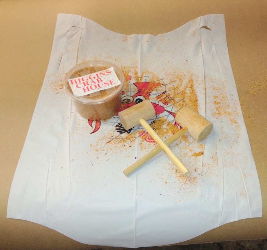 16 OZ HIGGINS CRAB SEASONING, 2 MALLET, 2 CRAB BIBS
